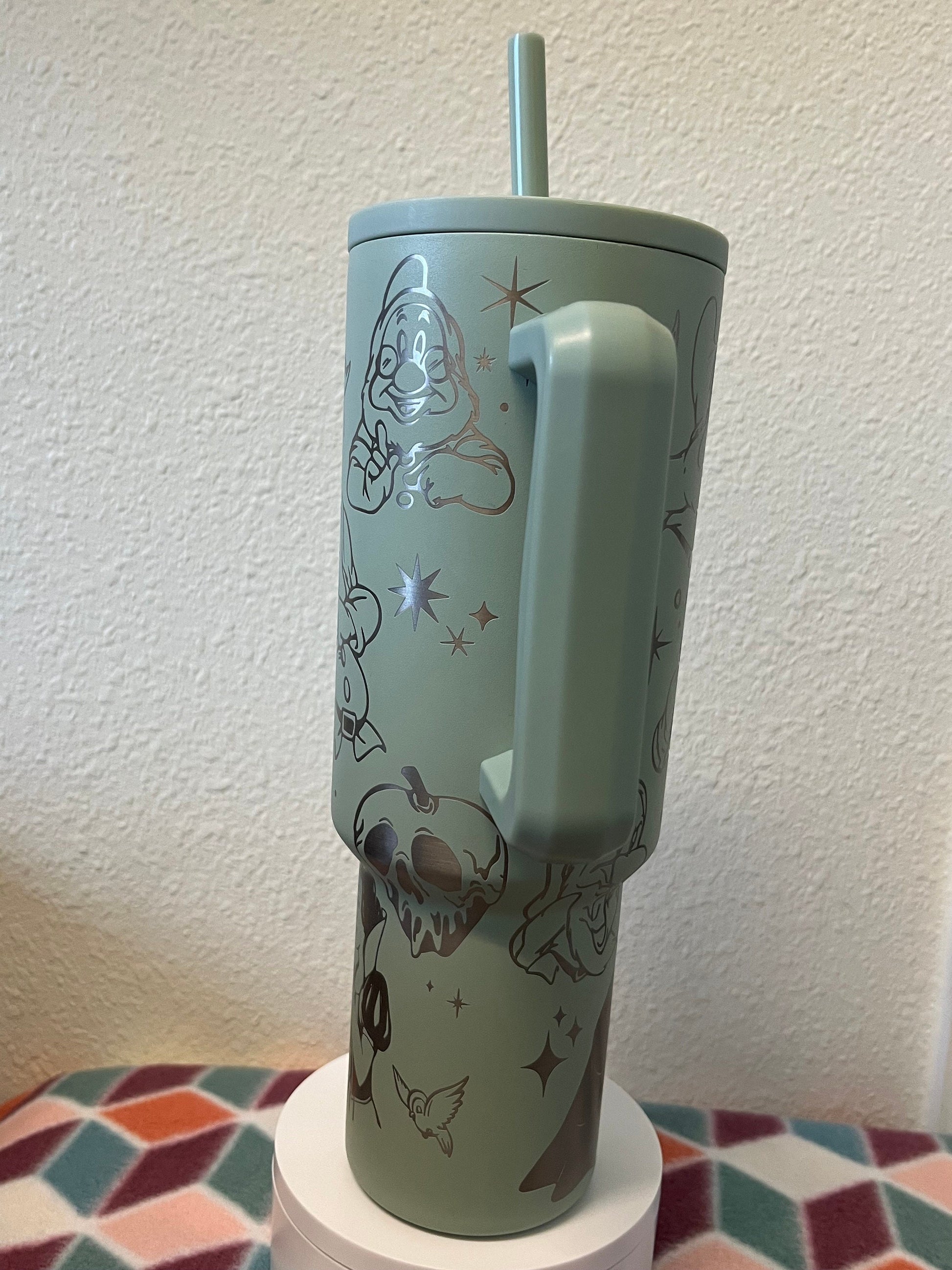 What sets this tumbler apart is its enchanting Snow White engraved design. The intricate artwork brings a touch of whimsy and charm, making it not just a practical accessory but also a delightful conversation starter. It’s perfect for Disney enthusiasts or anyone who appreciates a bit of magic in their day-to-day life.