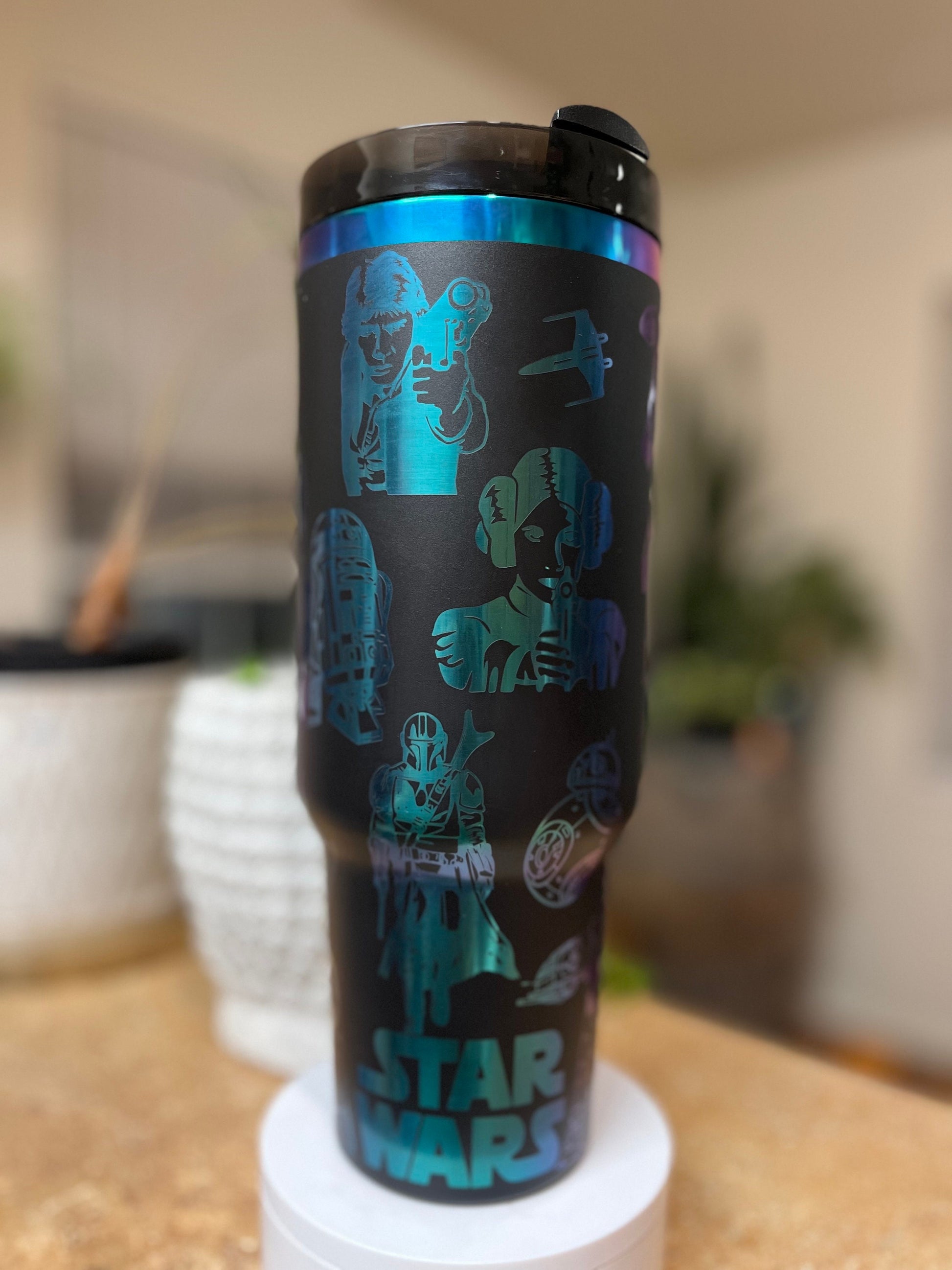 What sets this tumbler apart is its adventurous space inspired engraved design. The intricate artwork brings a touch of whimsy and charm, making it not just a practical accessory but also a delightful conversation starter. It’s perfect for Disney enthusiasts or anyone who appreciates a bit of magic in their day-to-day life.