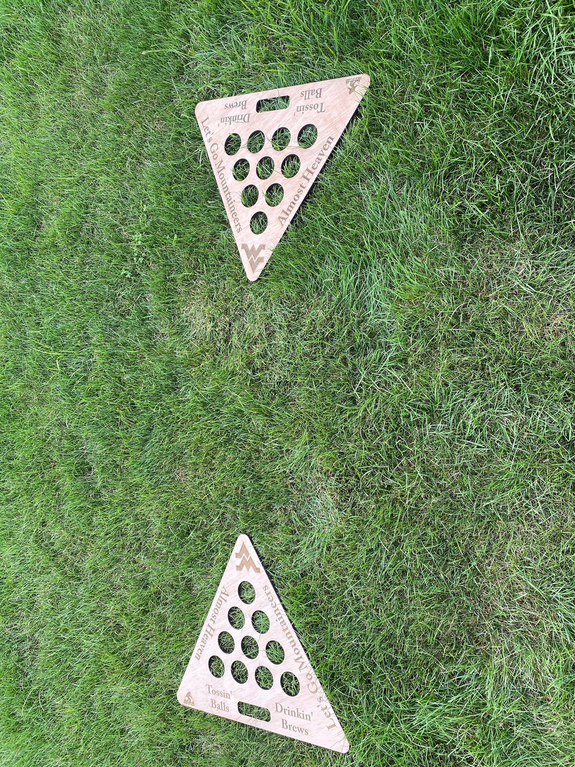 Our Custom Beer Pong Racks are great for Tailgating and also make a great gift for college students, birthdays, bachelor parties, and more! These Personalized Beer Pong Trays help you line up your cups perfectly while preventing the cups from sliding or tipping over. When you're not using the Beer Pong Racks they can easily be hung to display your personalized engravings.